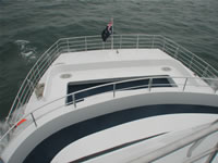 She has been designed to provide very comfortable accommodation for dive charters with very low maintainance. With a hydraulic diving platform which can be lowered into the water and allows the dingy to be lifted out of the water when underway.